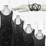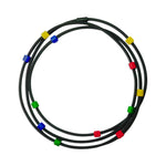 Long rubber necklace with resin beads. This design is one of my best sellers and possibly one of my most versatile.