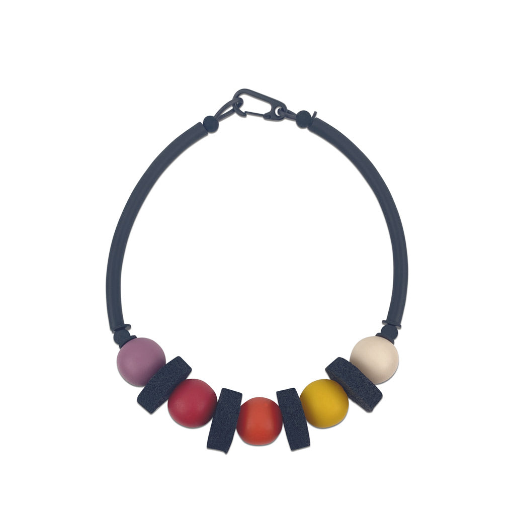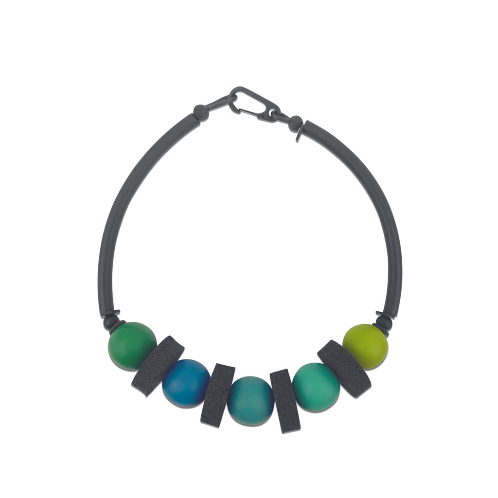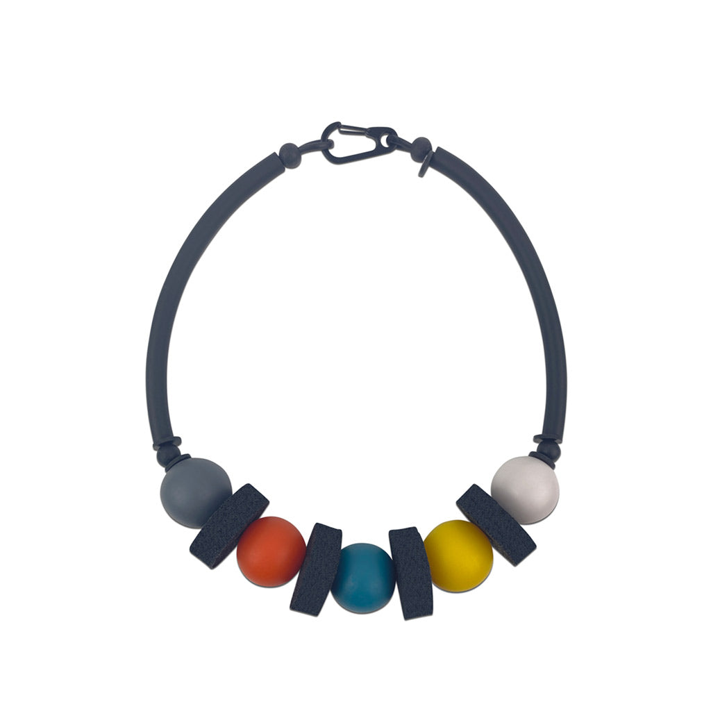 bold, blue resin and rubber, modern necklace by Frank Ideas