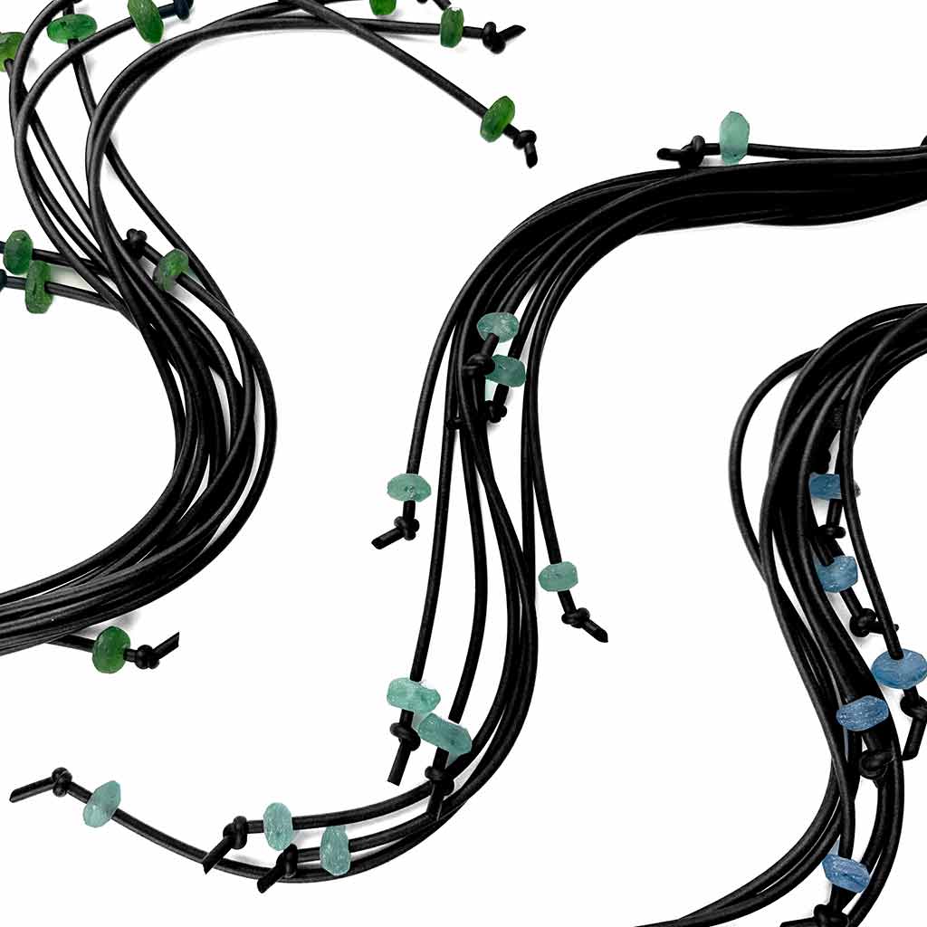 It's the unexpected contrast of texture, colour and materials that makes this necklace so fascinating.