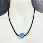 Simple, blue frosted sea glass and thin rubber necklace.