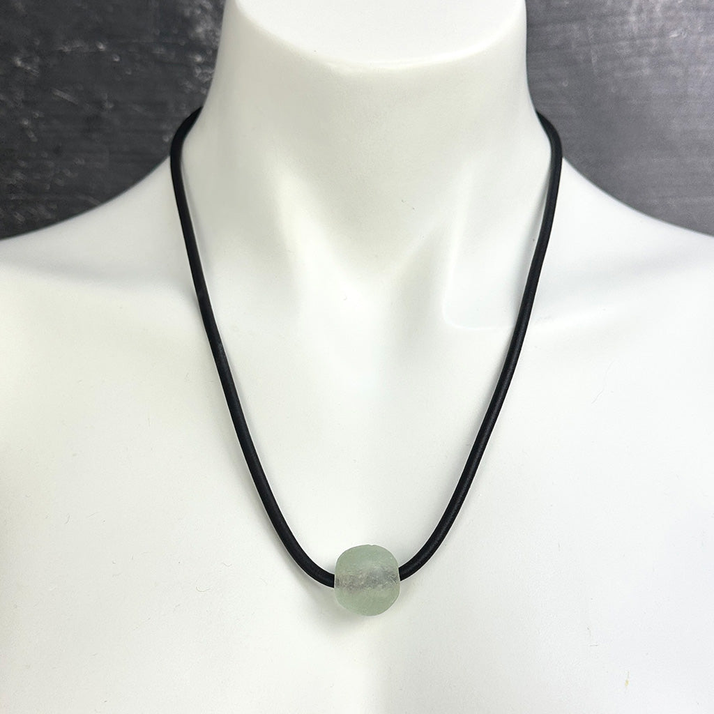 Simple, frosted sea glass and thin rubber necklace.