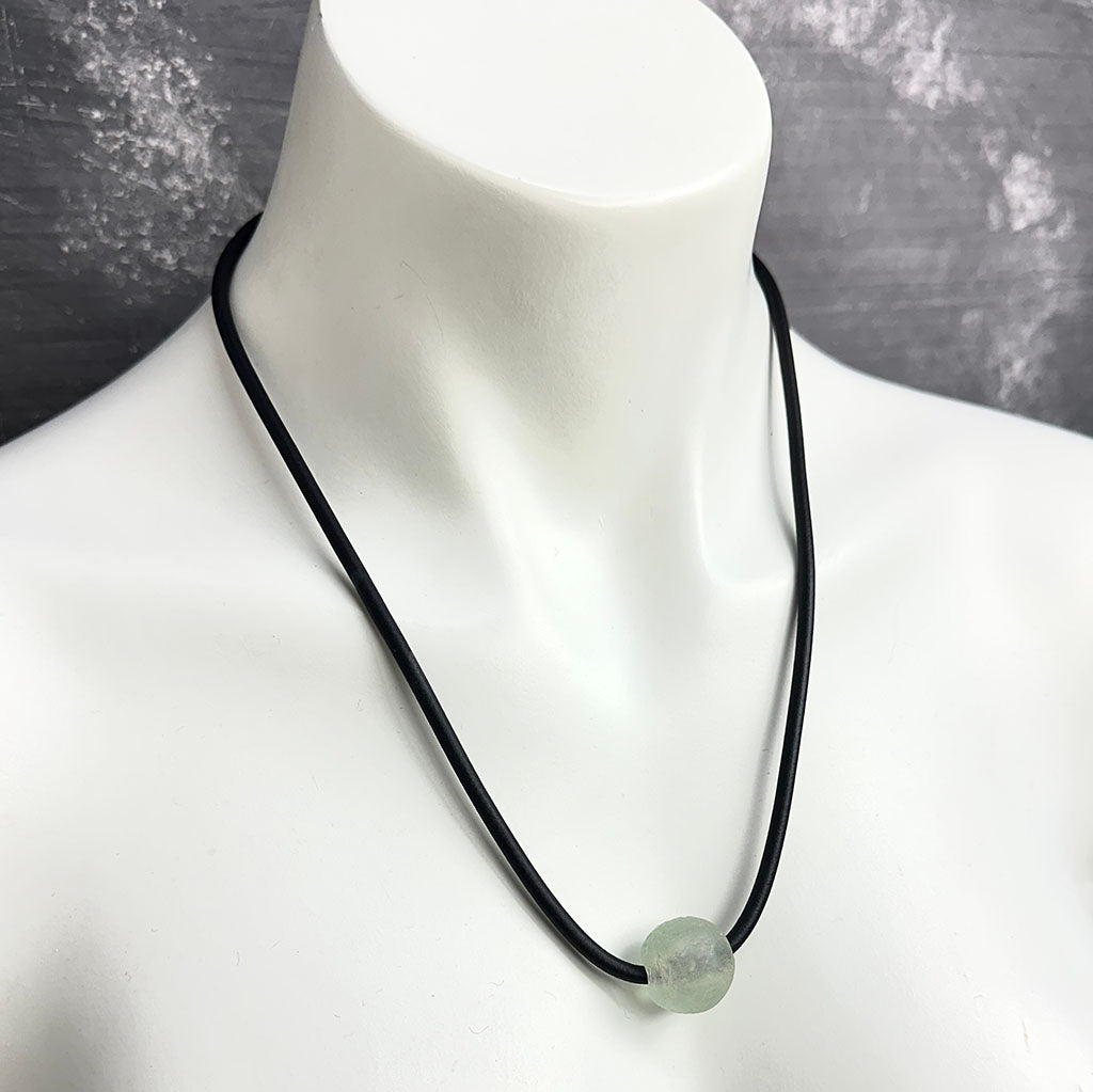 short single bead and thin rubber necklace -frosted sea glass