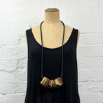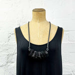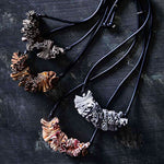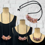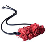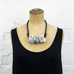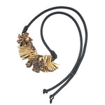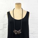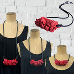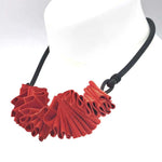 Leather necklace made from pleated, soft, fine leather and rubber.