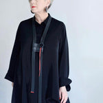 It has been described as having "a Japanese aesthetic while incorporating elements of religious garb." by the gorgeous Deborah Gates (@deborahgates_ on instagram) The touches of white or red provide just a hint of drama.