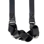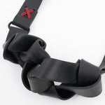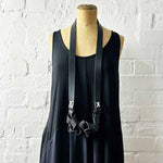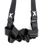 Bold, daring, avant-garde design lies in the details of this long rubber necklace.