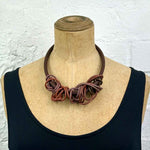 NB All of the tangles are on Frank Ideas signature Italian rubber neckpiece - finished with a metal clasp. All of neckpieces are black apart from the one listed as "shades of browns" - for this necklace the base is a delicious brown and there is a mix of browns in the tangle.