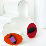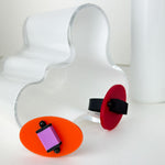 - Perspex shapes with rubber centres and a comfortable rubber band.