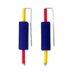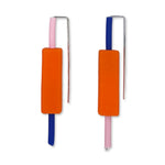 These earrings are all about confident colour and clean lines, with a strong dash of arty attitude.
