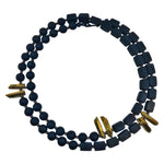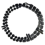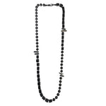A long, tactile mix of round and cube black resin beads interspersed with quartz in your choice of black, silver or gold.