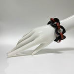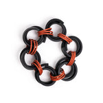 Rubber o-rings combined with loops of flat rubber give the bangle texture and flexibility.