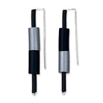 Each pair features a sleek sterling silver square top with a single or two-tone rubber column. Modern, artistic, and totally effortless to wear.