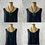 The pendant style comes on an adjustable length, rubber necklace which has an adjustable toggle so can be worn long, short or somewhere in between.